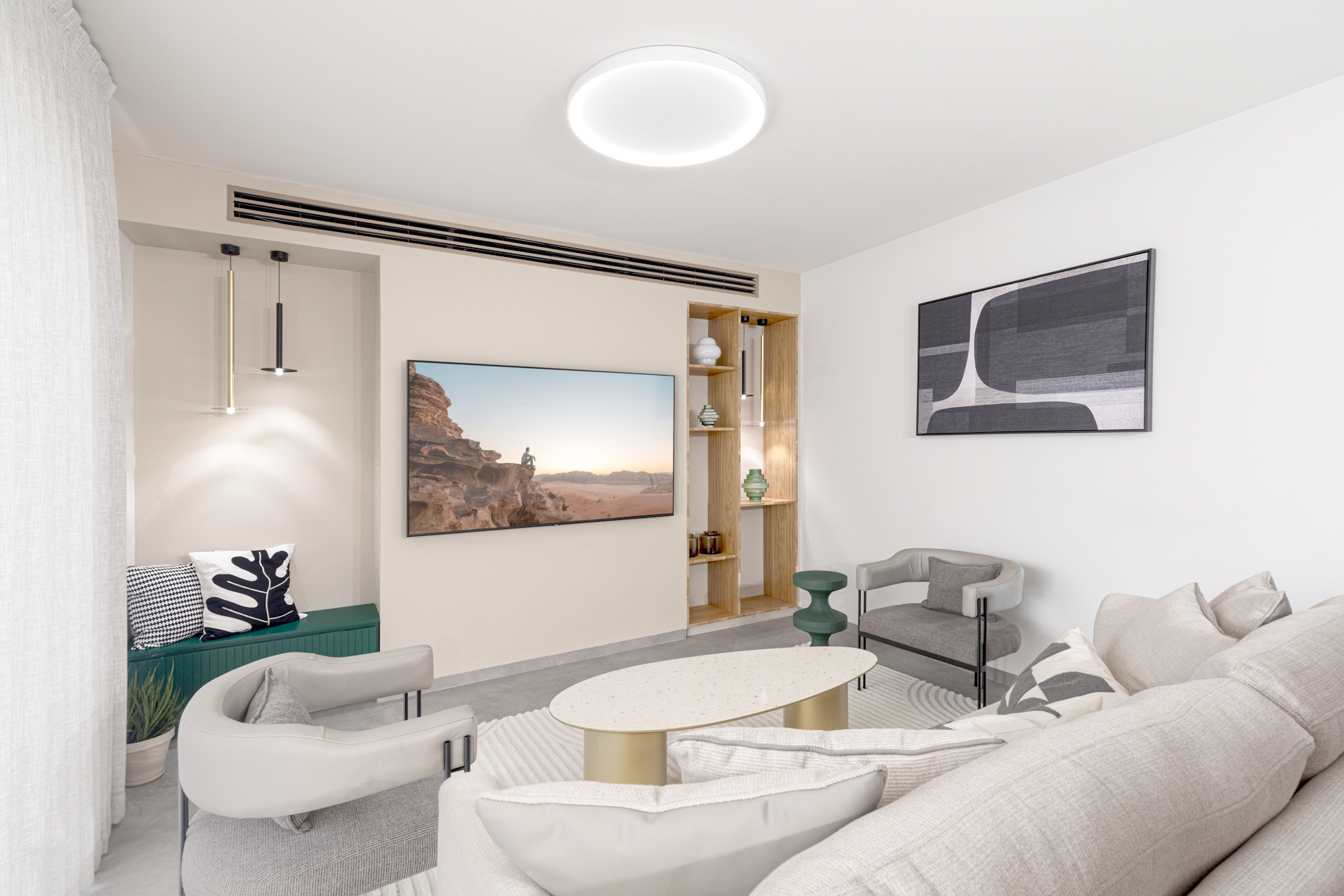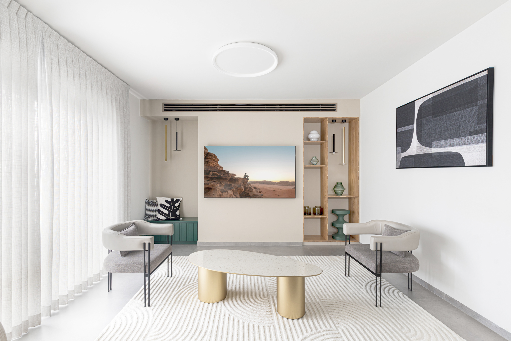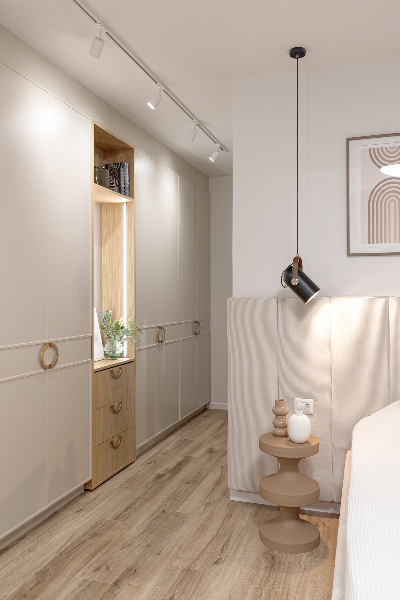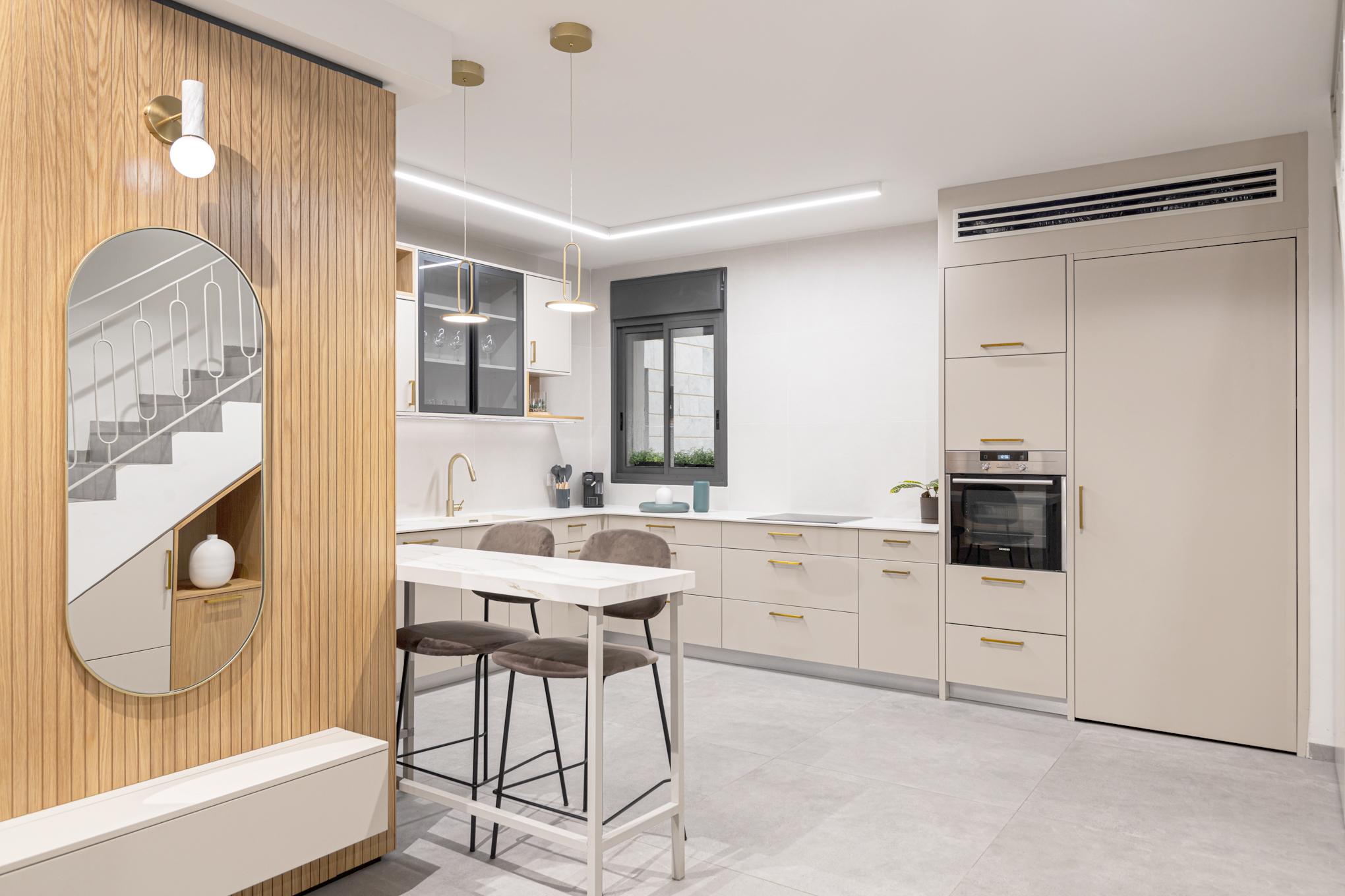 תכנון הנגרות היווה מרכיב עיקרי בעיצוב והעניק את האלגנטיות המודרנית עם חום העץ הטבעי.